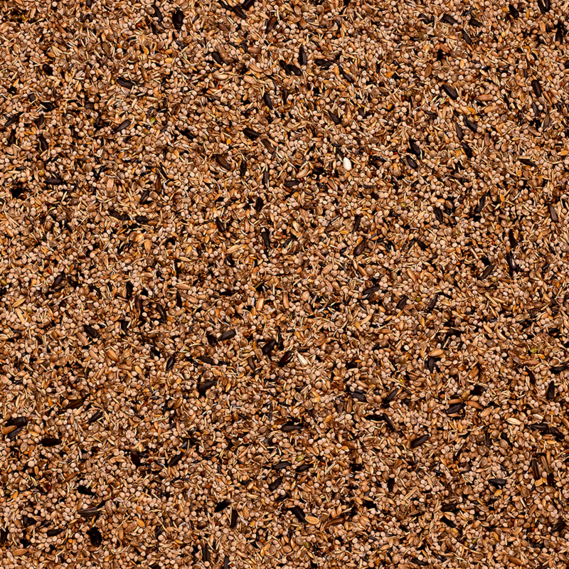 - Kemp-/hennepzaad, perilla wit, nigerzaad, witzaad, cichorei, kropaar, lijnzaad geel, slazaad wit, wortelzaad, zonnebloempitten MICRO, sesamzaad, perilla bruin, mariëndistel, klaverzaad